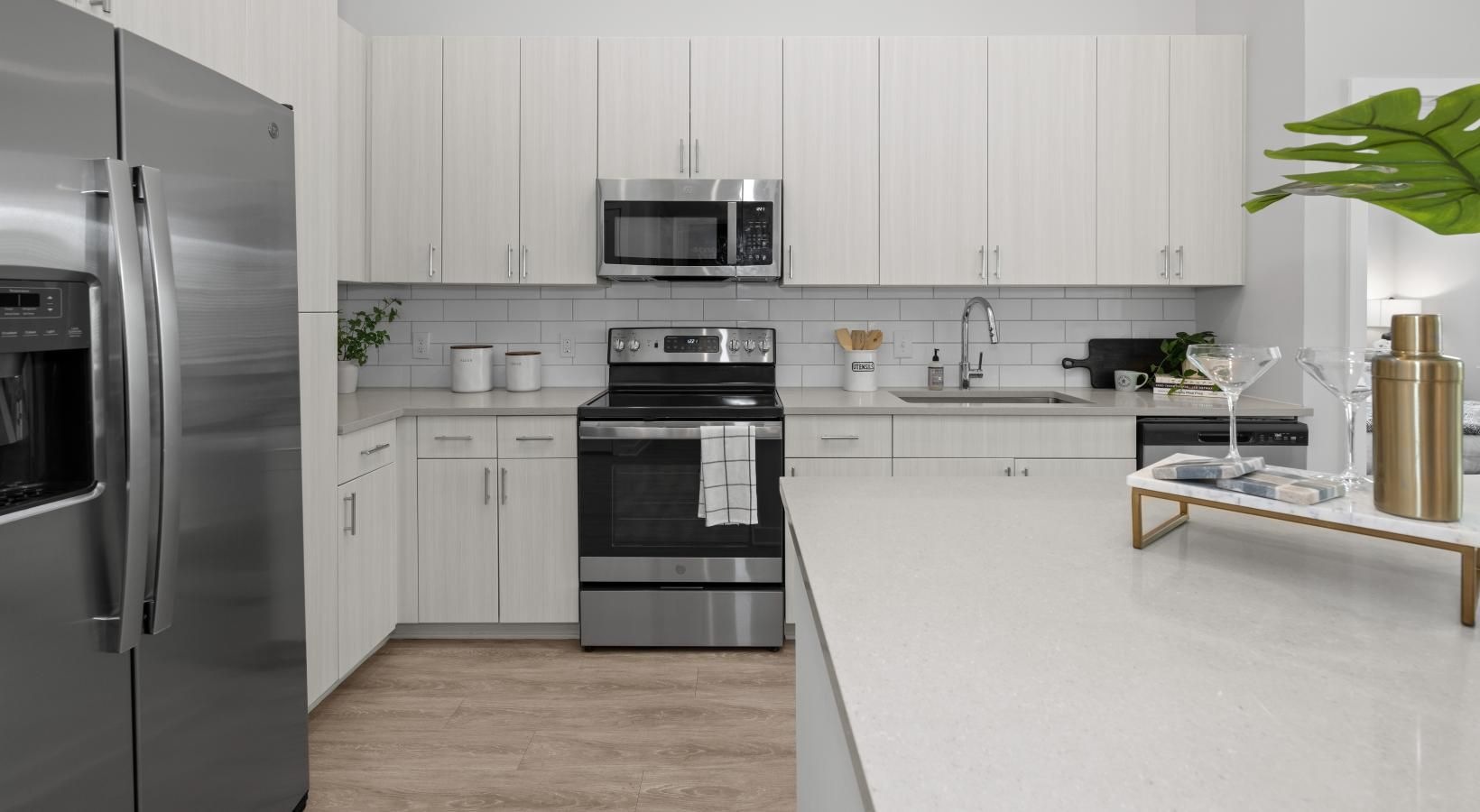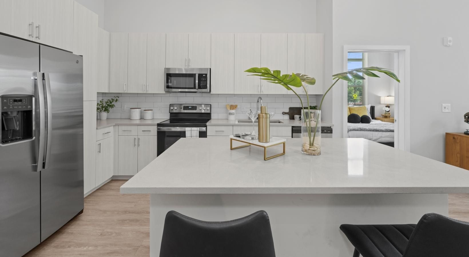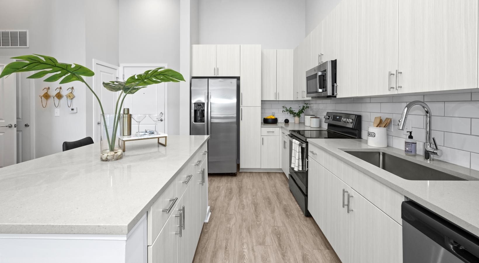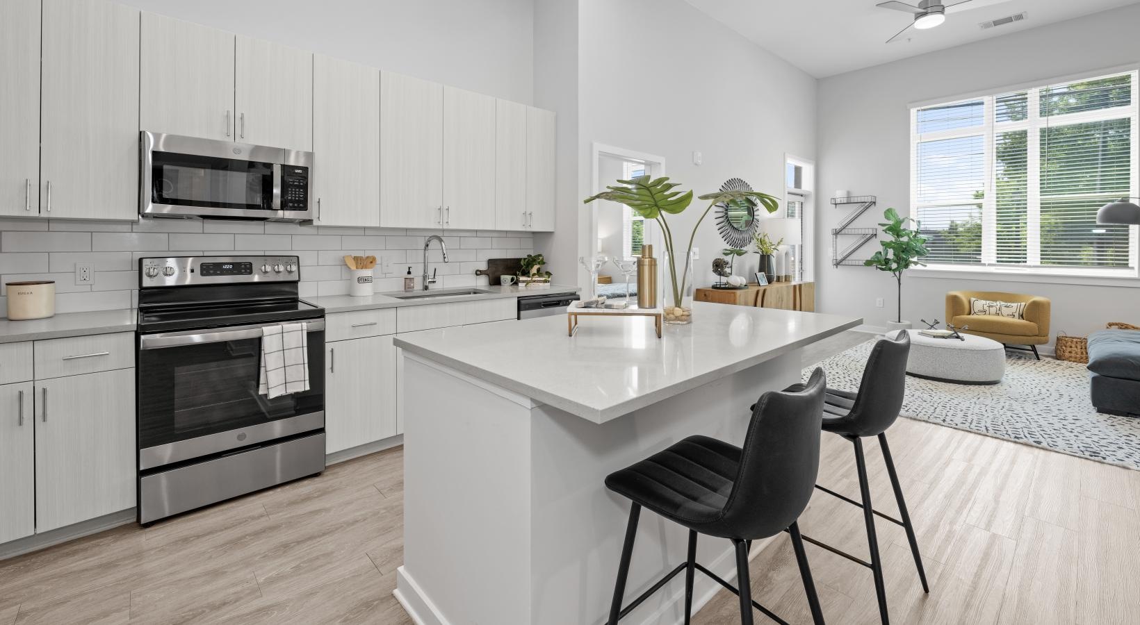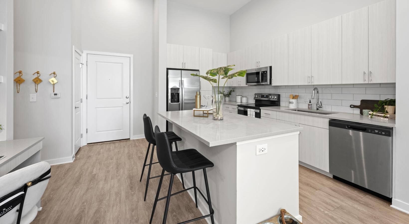 Find everything you need for everyday life inside your spacious apartment. We offer a selection of well- appointed one, two, or three-bedroom apartments to fulfill all your home necessities. Each apartment home features white quartz countertops, contemporary regency grey wide-plank flooring, and full-size front-loading washer & dryers. Our shared spaces guarantee leisure imbued with a feeling of belonging. Whether it is the 24/7 fitness club with body sculpt arena, private yoga room, and Peloton™ bikes or the club lounge with double-sided fireplace and paw spa and pet wash, you are bound to find the exclusive experience you desire. Alta West Morehead welcomes your pets and offers a dog park for your furry friends to roam around.