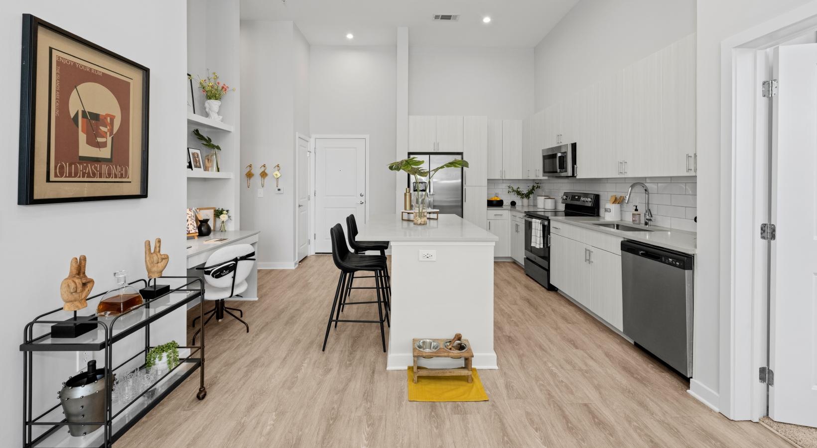 Explore Alta West Morehead through our curated gallery and discover what it means to live at a higher frequency. Our photo collection highlights the sleek interiors, energized amenities, and skyline views that set our Charlotte apartments for rent apart.